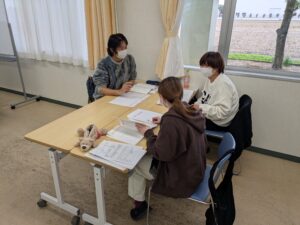 午後からは、障害者支援施設および通所事業所における2つの事例をグループに分かれて行いました。情報収集から利用者の背景を探り、支援の方向性について検討しました。今回の参加者は高齢者施設職員だったので、それぞれの事例に対して、悩む様子が見られました。各グループとも意見交換が活発で、多くの意見や考え方に触れ、さらに理解を深めることができました。
