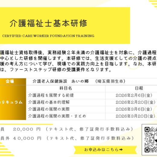 令和6年度 介護福祉士 基本研修 開催要項をお知らせします。 開催期...