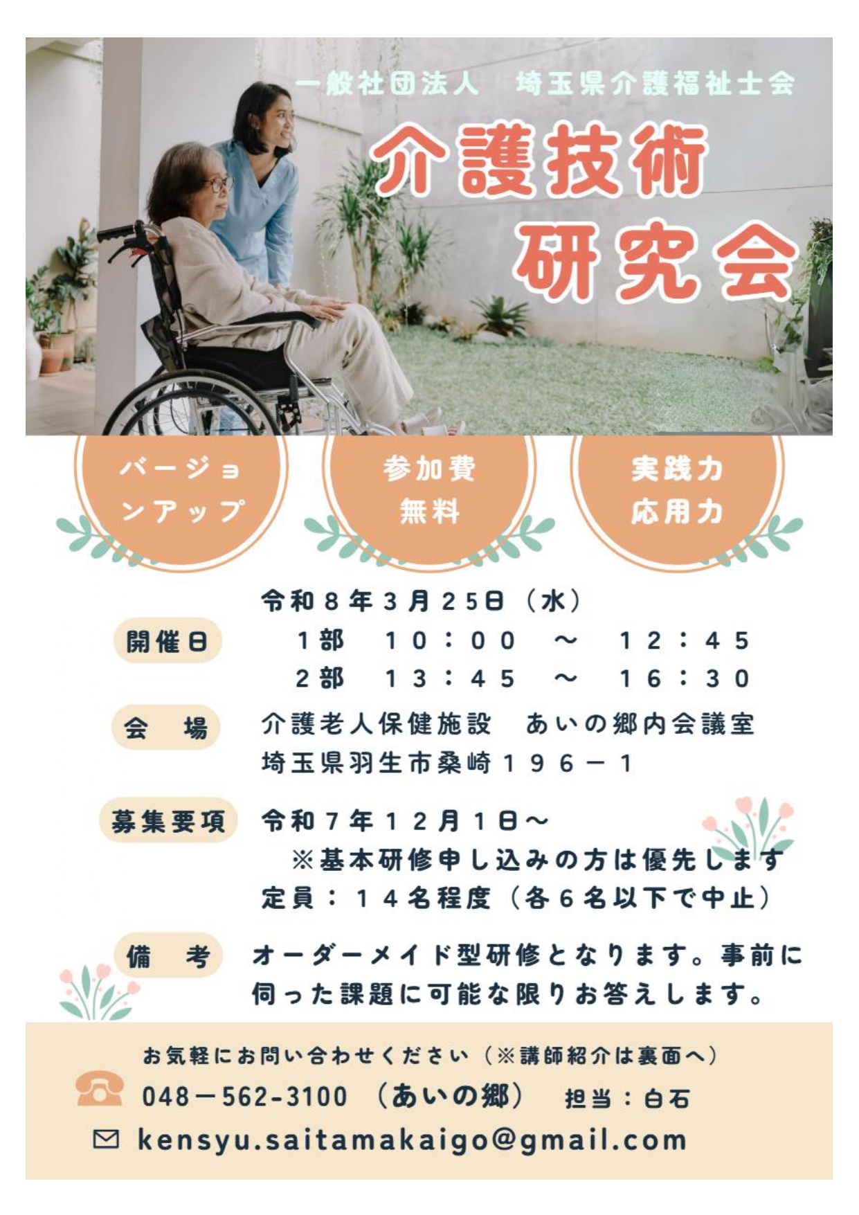 介護技術研究会 開催のお知らせ(埼玉県介護福祉士会 北部主催)